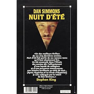 -Nuit d'été - Dan Simmons - Babelio."Nuit d'été" ressemble effectivement beaucoup à "Ca" de Stephen King. C'est précisément pour cela que j'avais envie de le lire. Une bande de copains qui combattent le mal dans une petite bourgade , tout y est jusqu'à le "boss ultime" à terrasser.